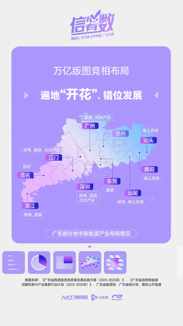 从新能源产业版图布局来看,广东一直走在全国前列,各地竞相布局、错位发展,提升含“新”量。先有大亚湾核能,再有阳江风电,如今广深佛的氢能产业也在快速崛起中。